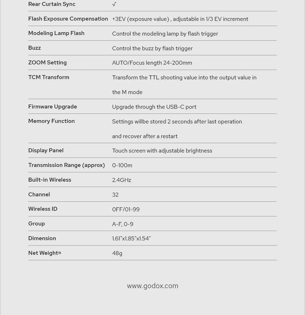 Utilizando o avançado sistema Godox Wirelessx de 2,4 GHz, o X3 permite um gerenciamento fácil e confiável de sua configuração de iluminação Godox. A função de varredura de canal sobressalente evita interferência de outros usuários operando no mesmo canal.Um recurso de nota é a sincronização sem fio.Conecte perfeitamente o X3 ao nosso próximo flash de câmera retrô com apenas um toque.